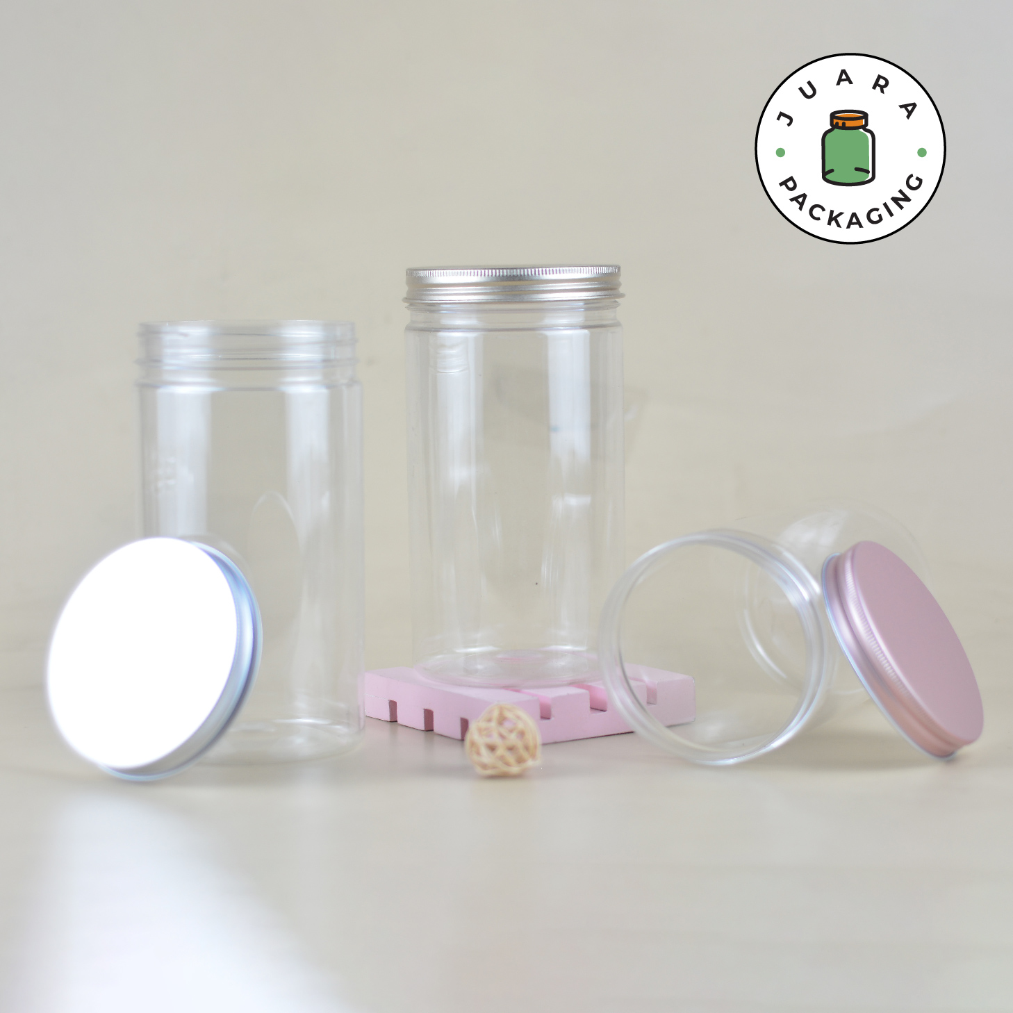 Toples Plastik Bening 1000ml – Jar Serbaguna dengan Tutup Warna Silver Gold Pink Hitam untuk Wadah Makanan Ringan Kue Kering Snack Refill Kosmetik Tempat Penyimpanan Toples Plastik Tebal Premium