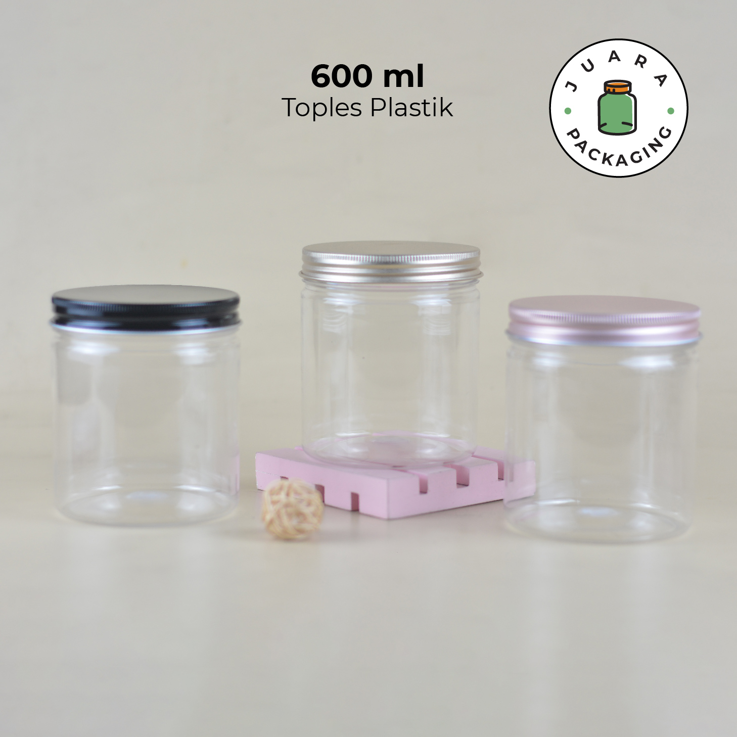 Toples Plastik Bening 600ml – Jar Serbaguna dengan Tutup Warna Silver Gold Pink Hitam untuk Wadah Makanan Ringan Kue Kering Snack Refill Kosmetik Tempat Penyimpanan Toples Plastik Tebal Premium