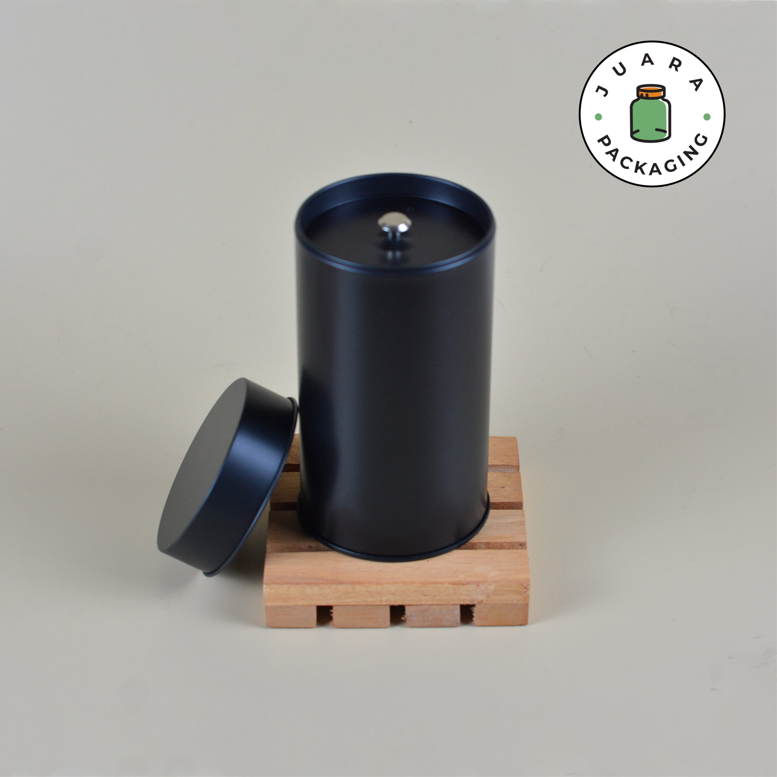 Wadah aluminium hitam berbentuk jar atau toples ini merupakan pilihan sempurna untuk kemasan produk yang ingin tampil elegan dan anti karat. Desainnya yang menarik dan aman dari karat menjaga kesegaran produk di dalamnya. Cocok digunakan untuk berbagai produk seperti makanan, kosmetik, atau barang pecah belah lainnya.