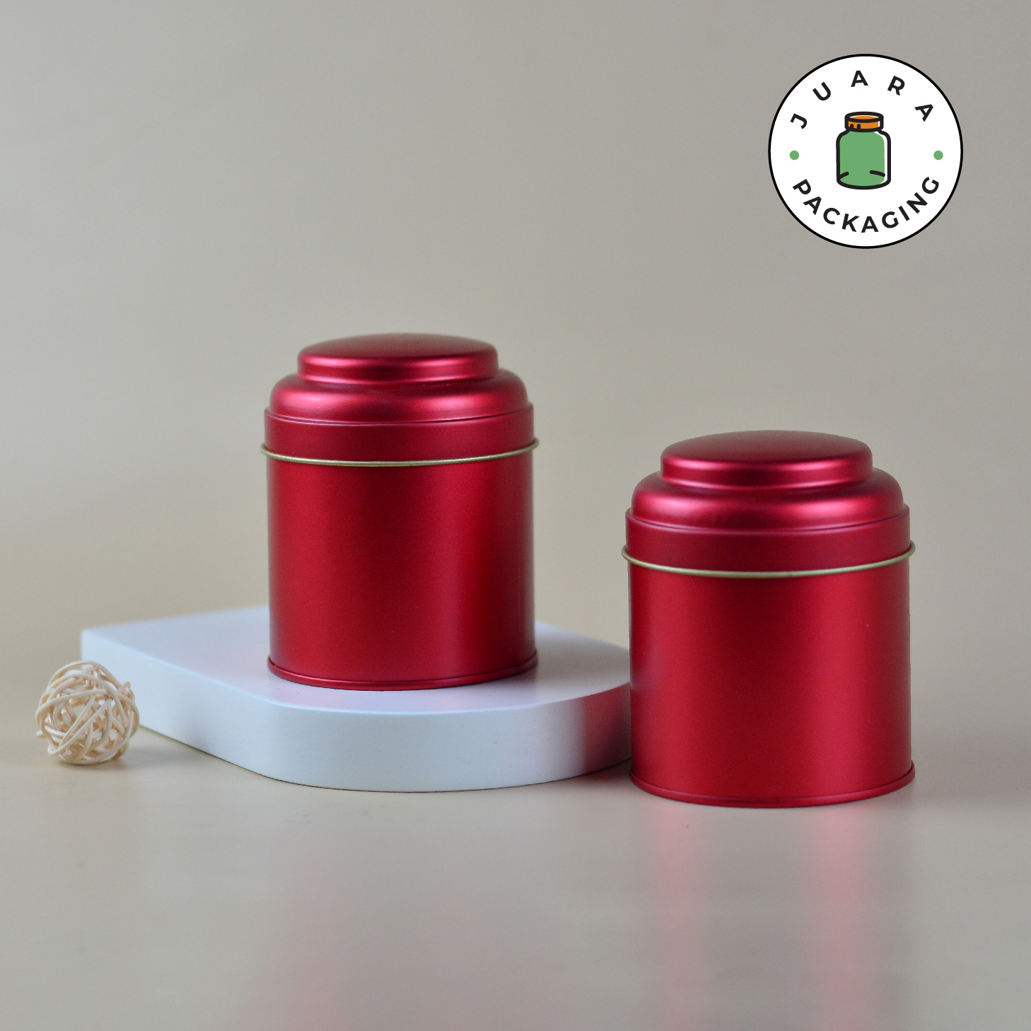 Wadah tin merah berbentuk jar atau toples ini merupakan pilihan sempurna untuk kemasan produk yang ingin tampil elegan. Desainnya yang menarik dan aman dari karat menjaga kesegaran produk di dalamnya. Cocok digunakan untuk berbagai produk seperti makanan, kosmetik, atau barang pecah belah lainnya.