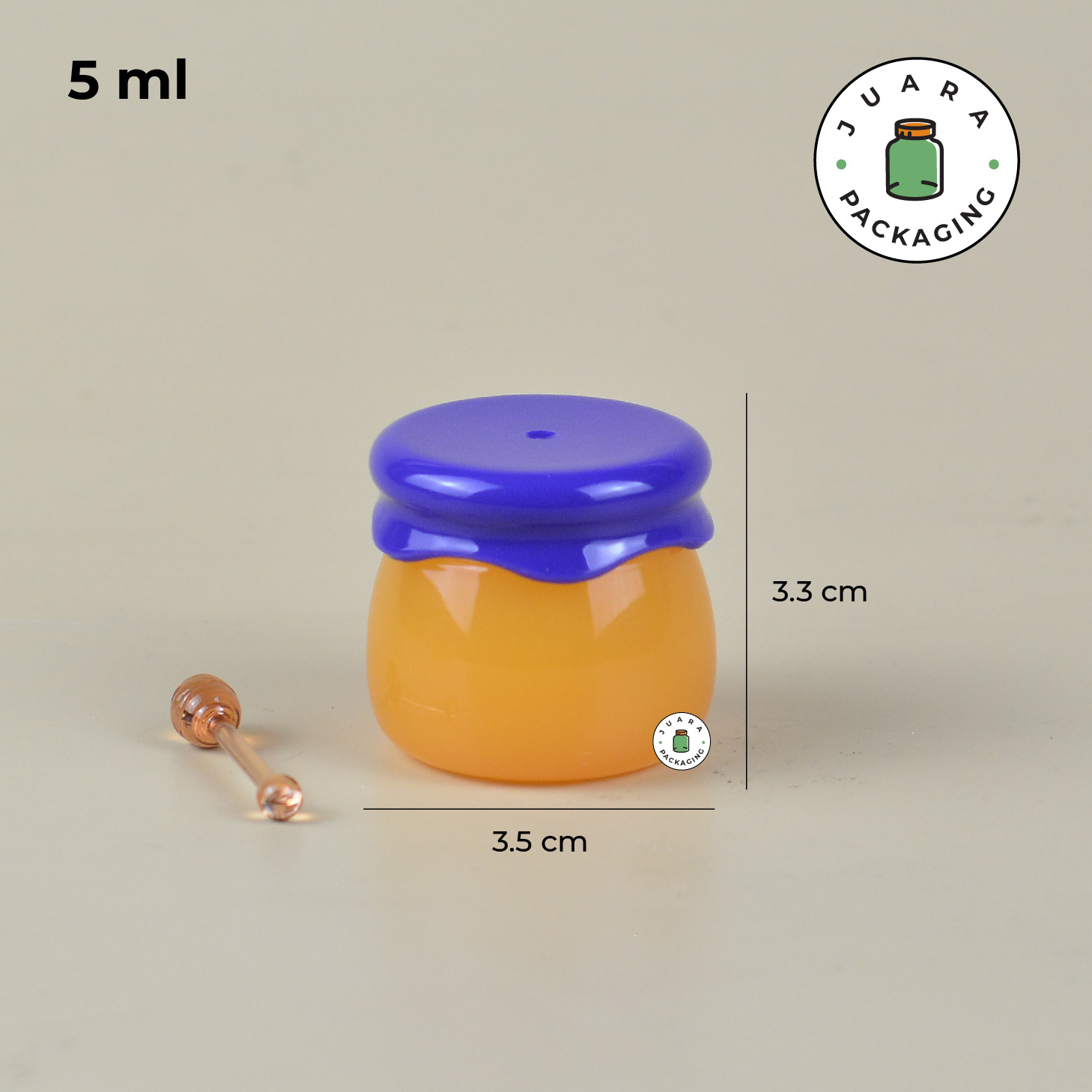 Pot Plastik 5ml 5gr ini hadir dalam bentuk madu yang unik dan lucu, lengkap dengan spatula. Cocok untuk menyimpan lipstick, lip serum, lipbalm, dan lipgloss. Kemasan produk yang menarik ini praktis untuk dibawa kemana saja, memastikan perawatan bibir Anda tetap stylish dan higienis.