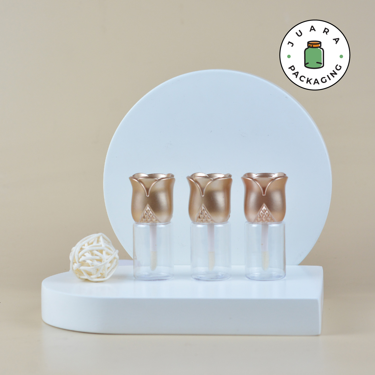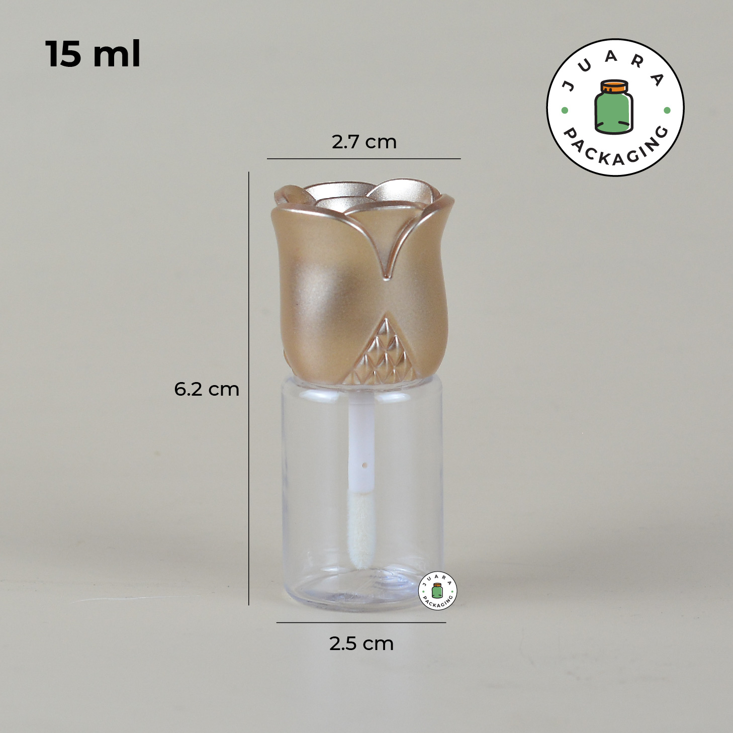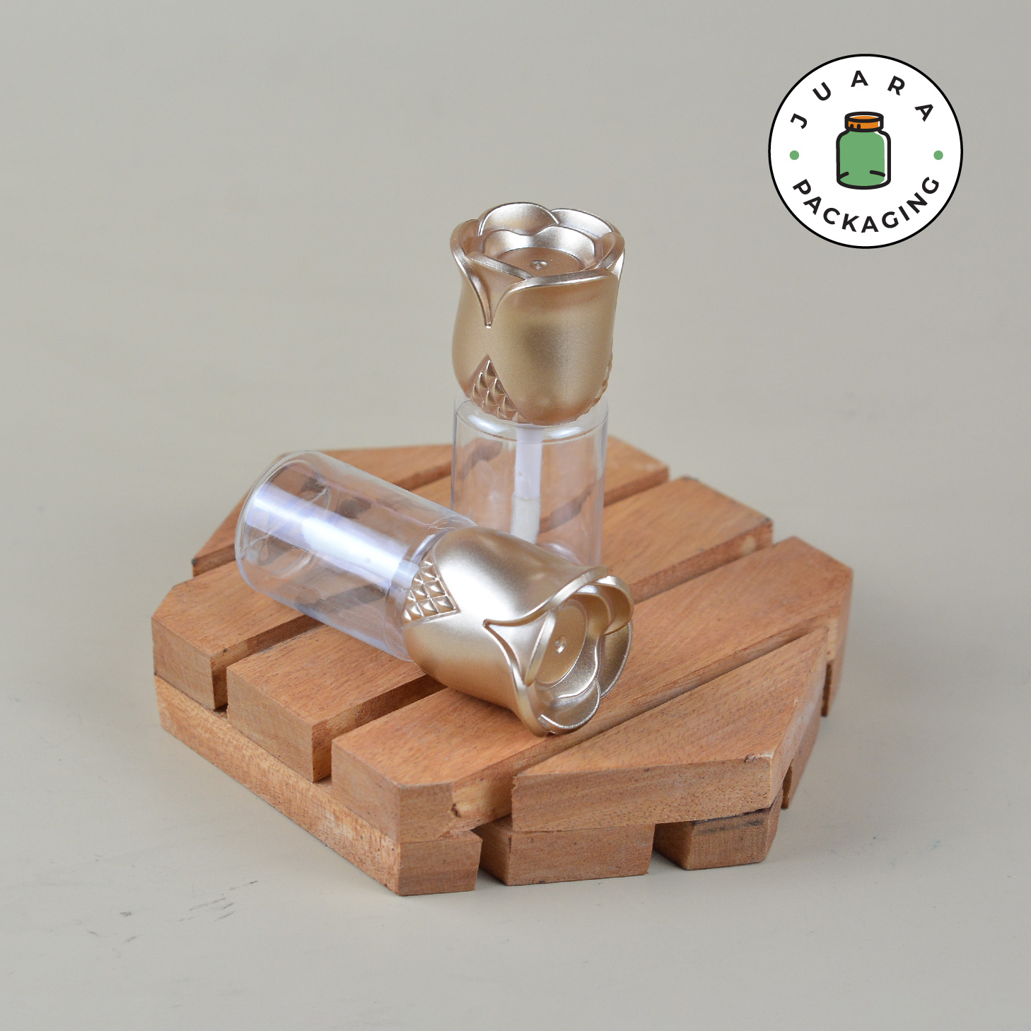 Wadah Lipcare 15ml ini terbuat dari plastik dengan motif bunga mawar dan tutup gold yang elegan. Cocok untuk liquid lipstick, lip serum, lipbalm, dan lipgloss. Kemasan produk yang transparan dan unik ini tidak hanya lucu tetapi juga praktis, membuatnya sempurna untuk perawatan bibir sehari-hari dengan gaya.