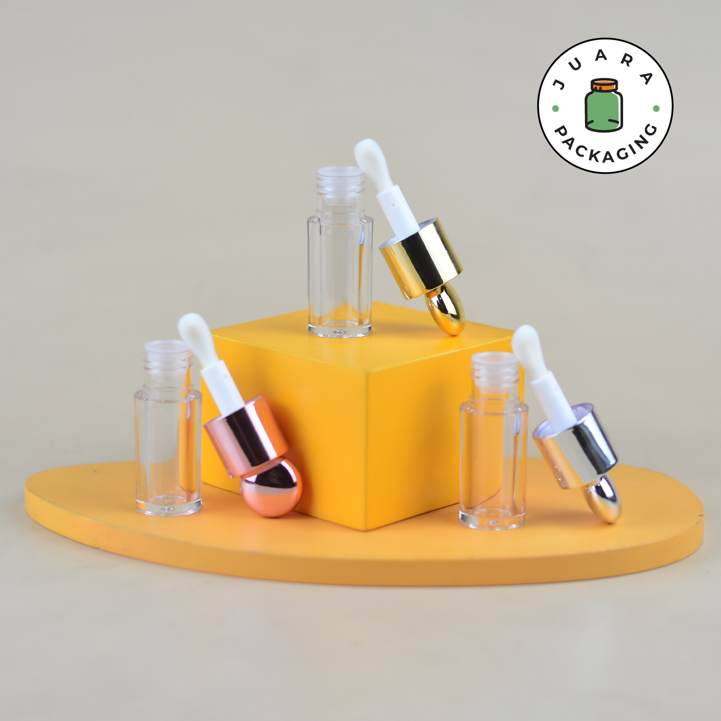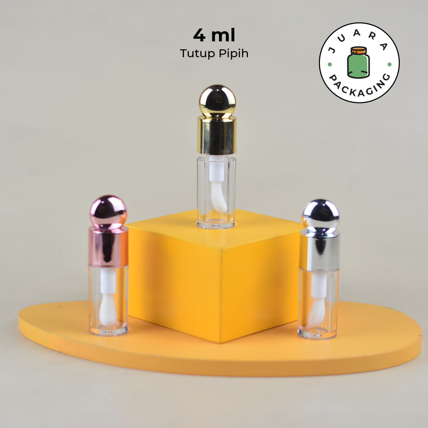 Wadah Lipcare 4ml berbahan acrylic bening dengan tutup metallic pipih gepeng ini menawarkan desain unik dan elegan. Kemasan produk ini cocok untuk liquid lipstick, lip serum, lipbalm, atau lipgloss. Tampil stylish dan praktis, wadah ini membuat produk kecantikan Anda lebih menarik dan profesional di pasaran.