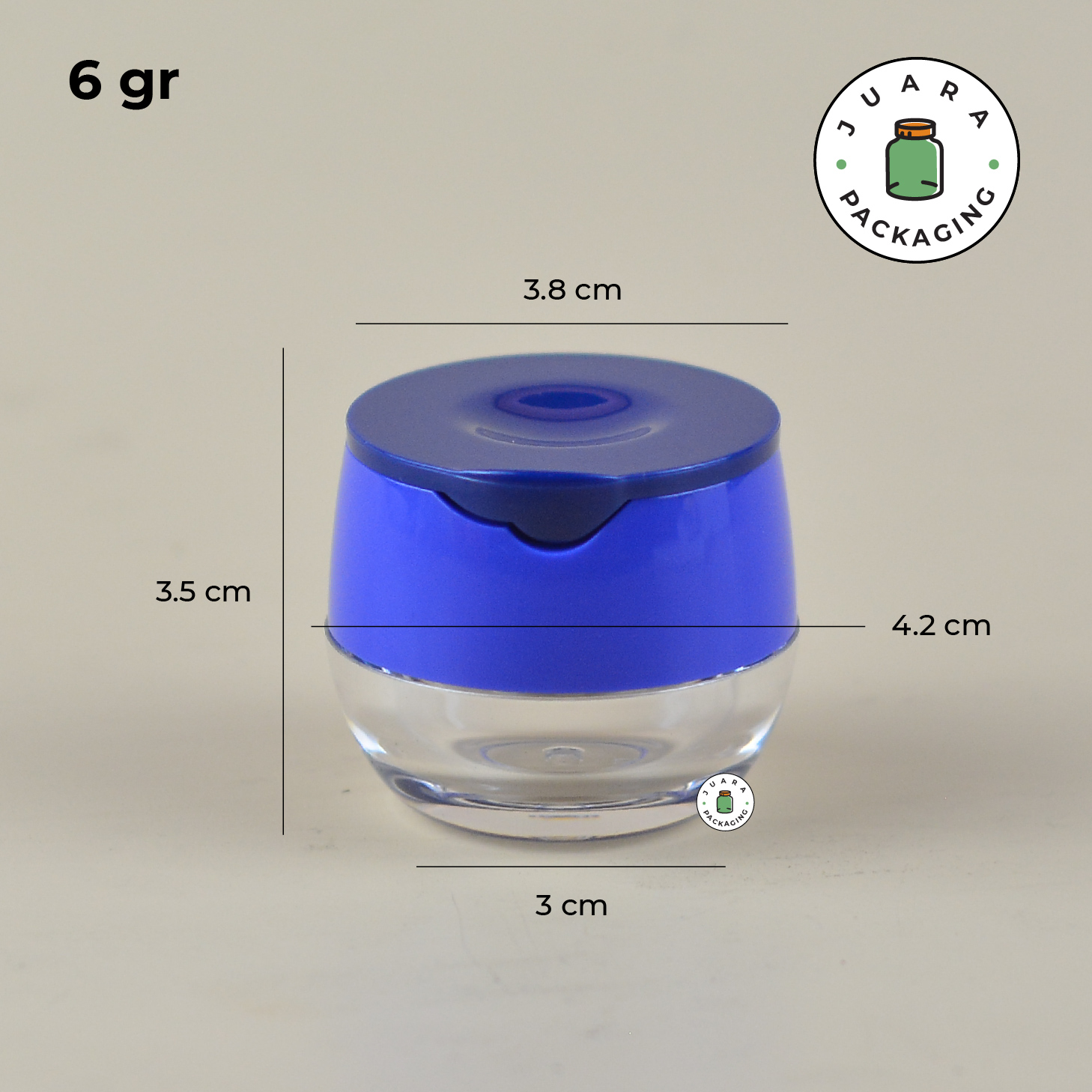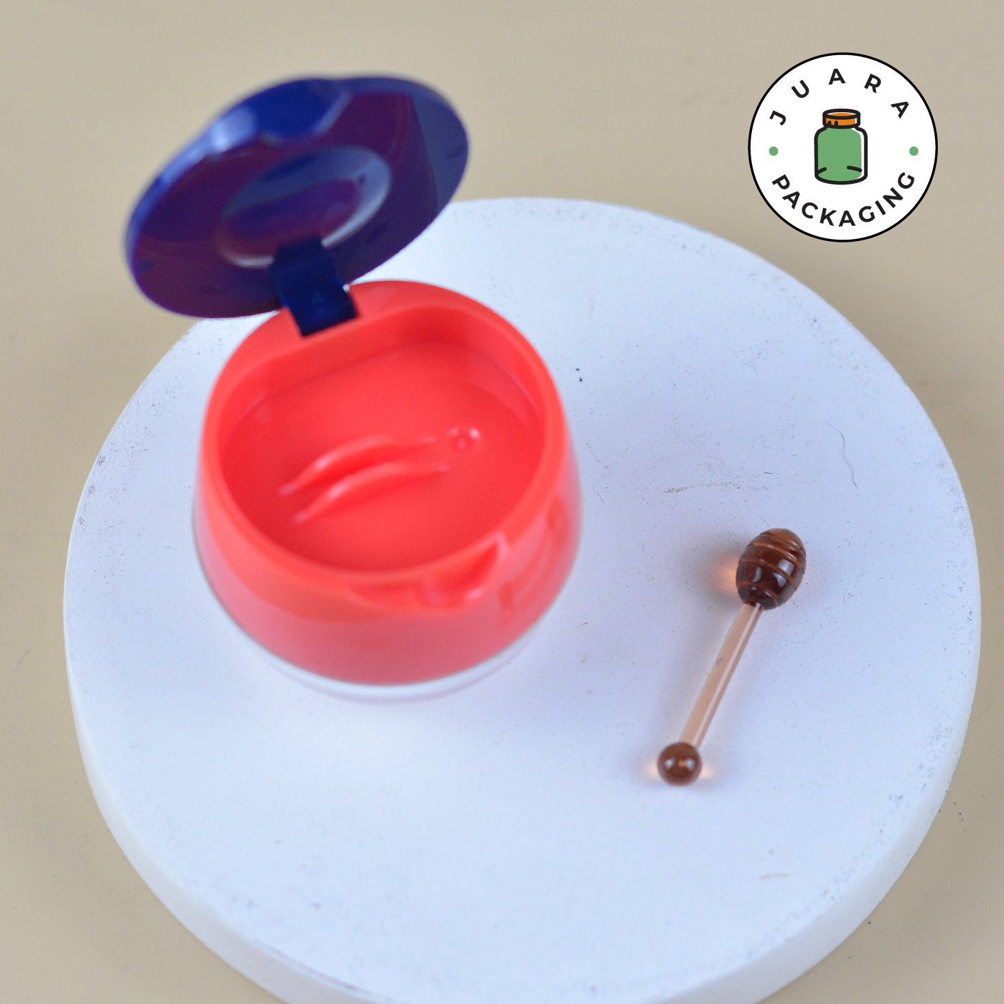 Wadah Lipcare 6gr ini terbuat dari pot acrylic berkualitas dan dilengkapi dengan spatula plastik untuk aplikasi yang higienis. Tutup warna-warni biru, merah, dan kuning menambah tampilan ceria. Kemasan produk praktis ini cocok untuk menyimpan lip balm atau salep, ideal untuk penggunaan sehari-hari atau bepergian.